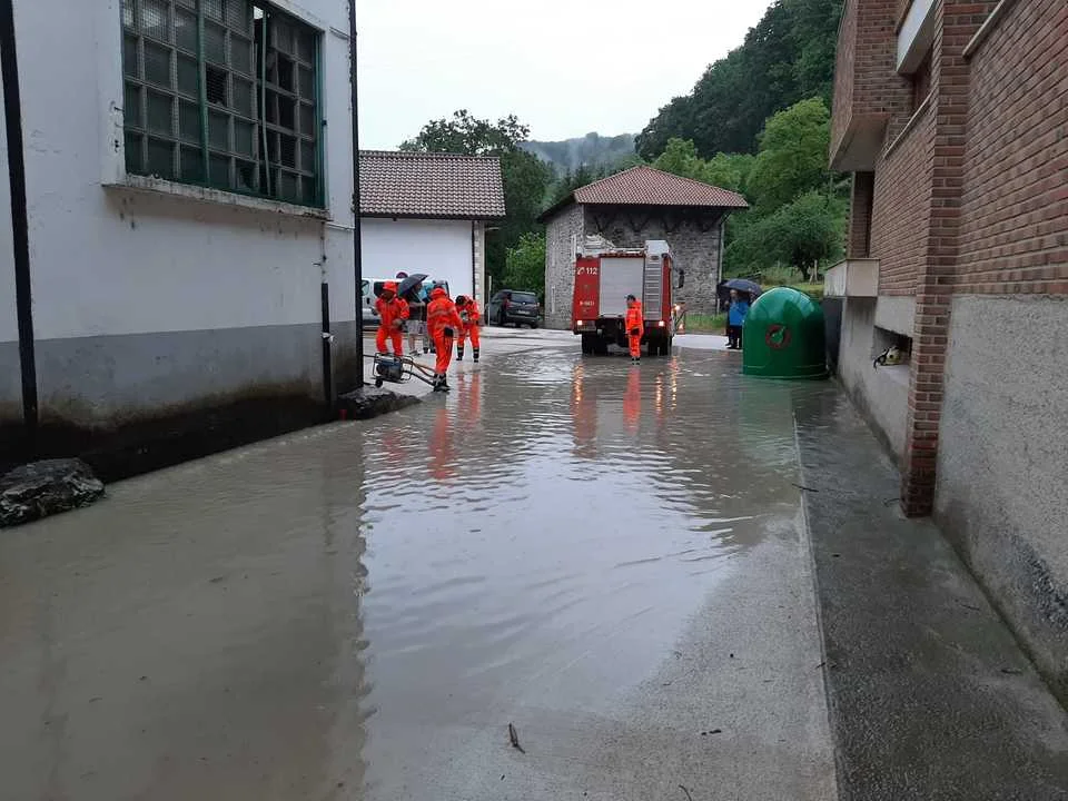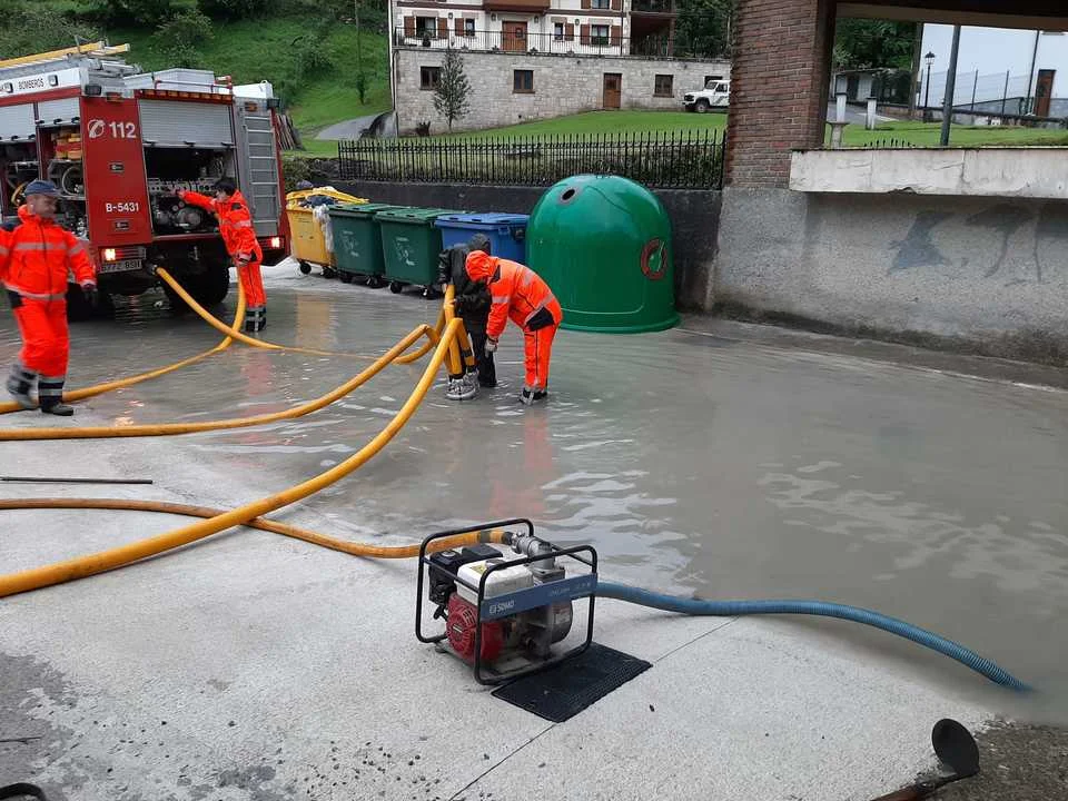 Goizuetako suhiltzaile boluntarioak ura ateratzen.