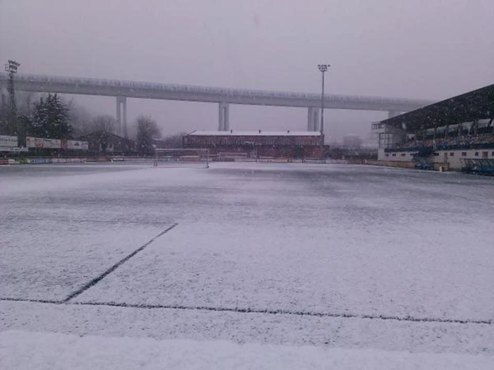 tabirako futbol zelaian elurra.