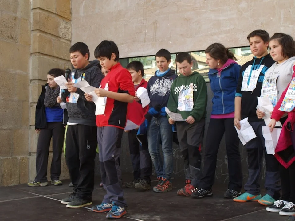 Kolak irakurri dituzte korrika egin ostean, Eskoriatzan, txikienek.