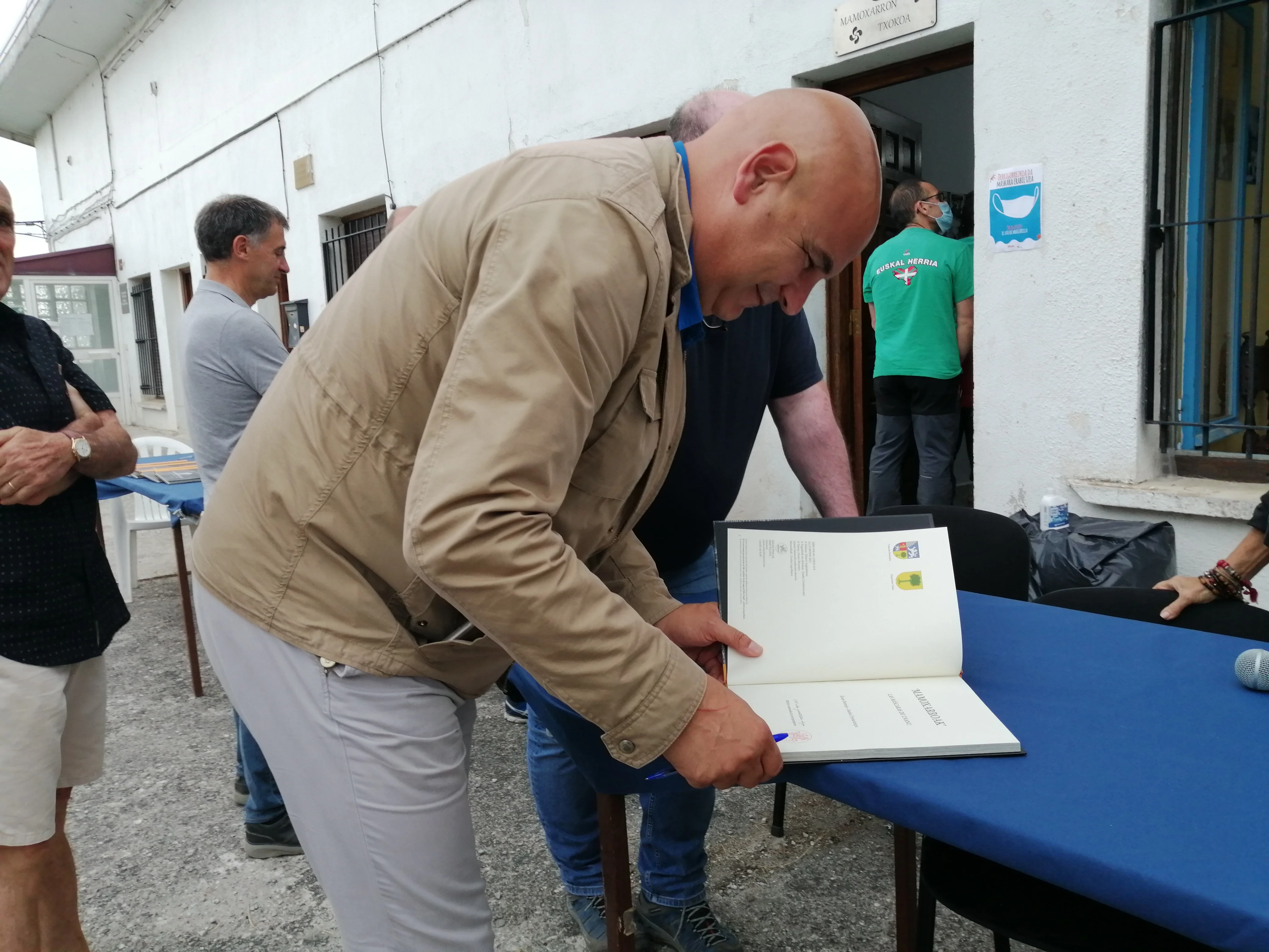 Joseba Urretavizcaya liburuak sinatzen.