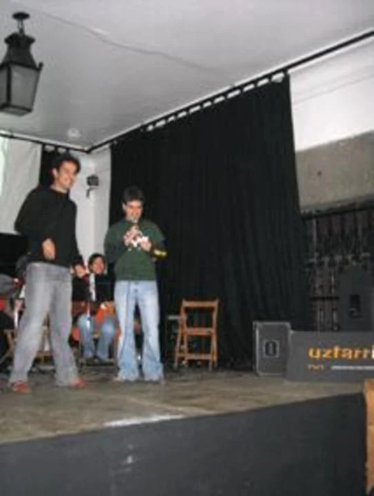 Argazkia: Bertsolari eta musikarien emanaldia. Beñat Lizaso eta Haritz Etxeberria *Ministro* bertso