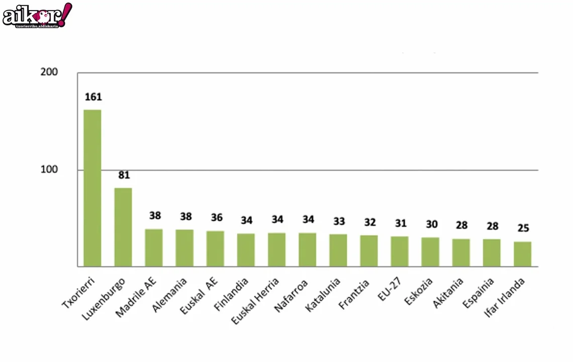 2019: Eskualdeetako BPGdak biztanleko, milatan