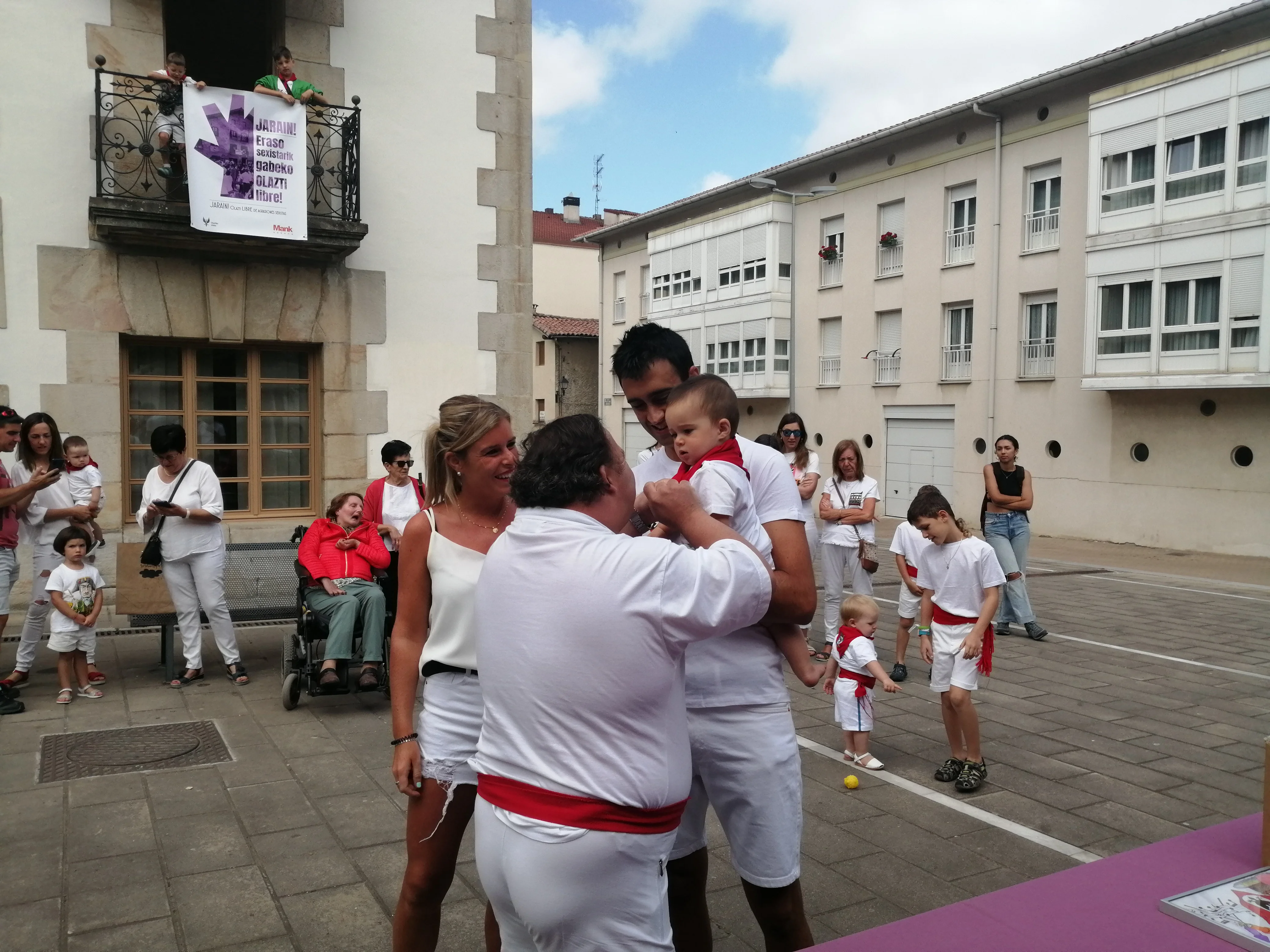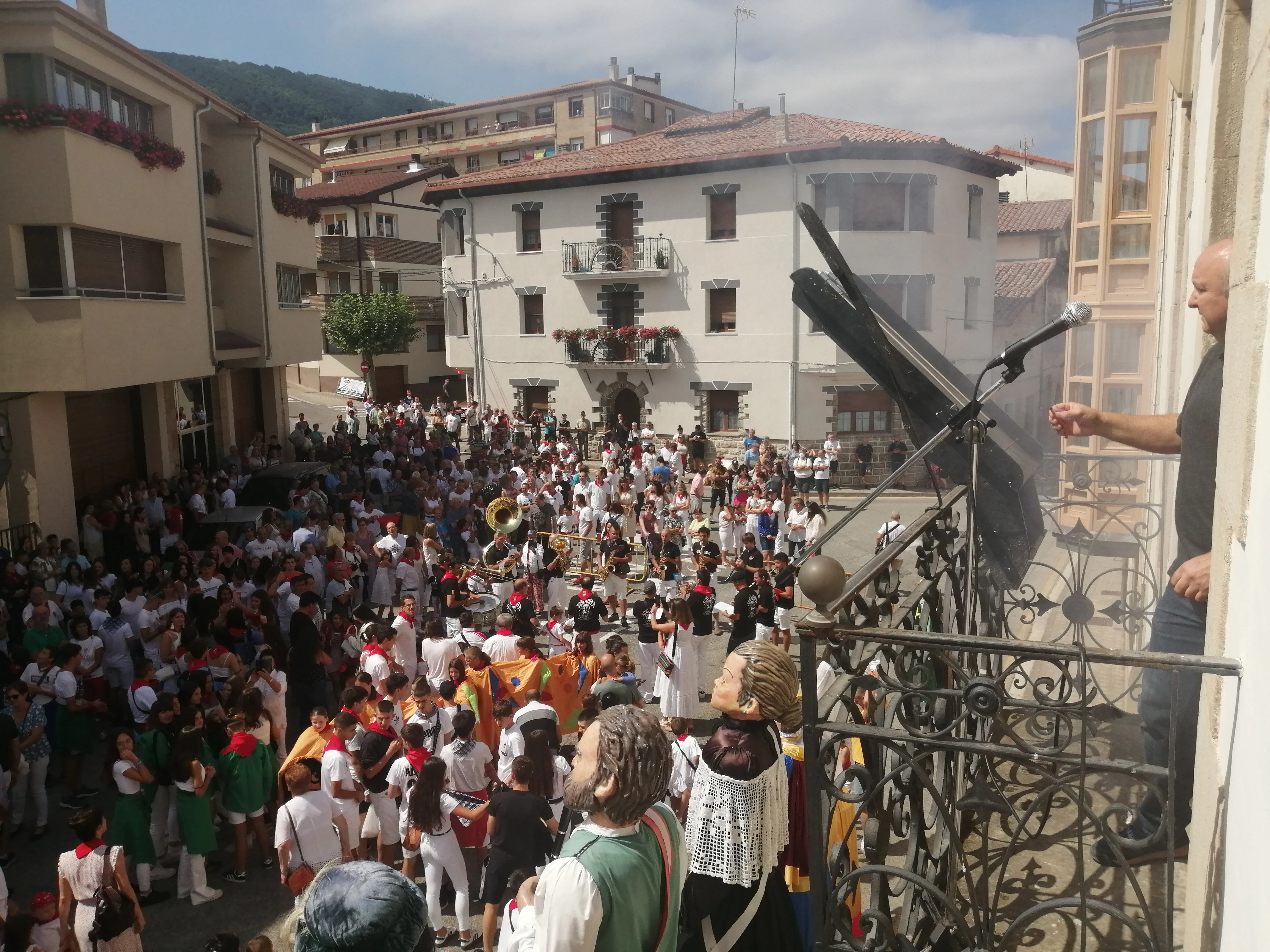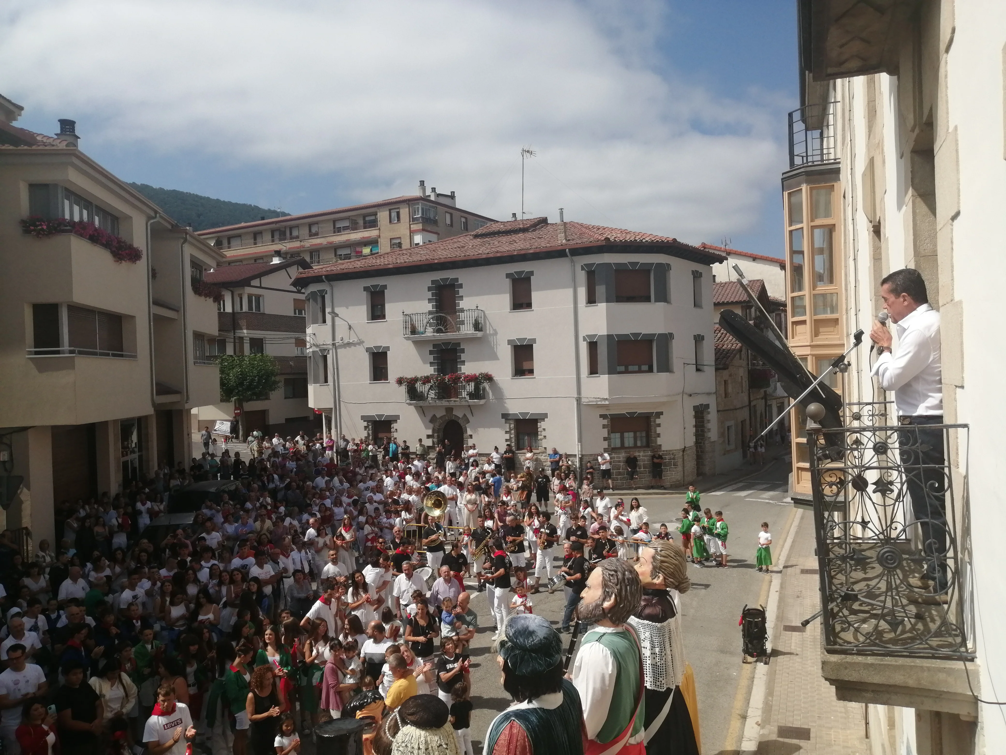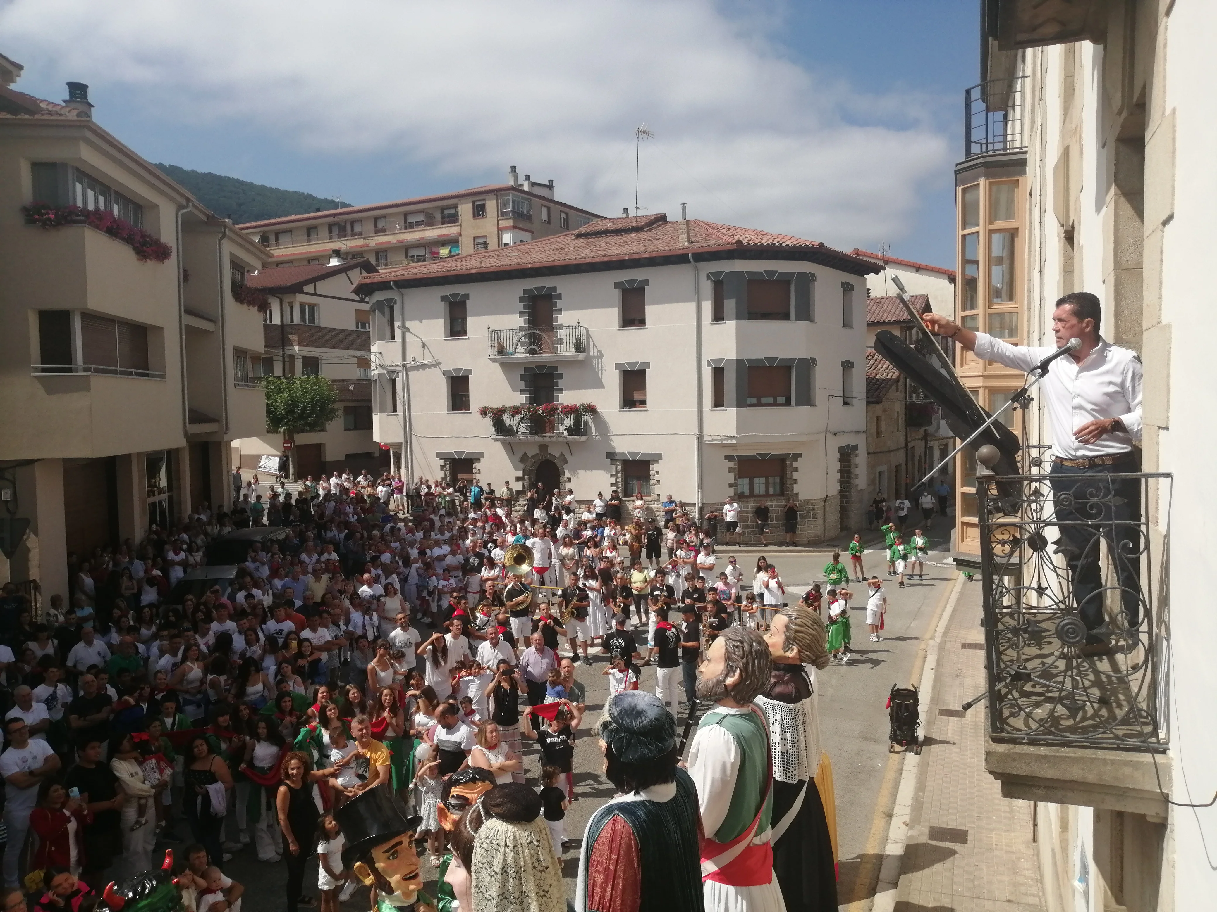Martin Mazquiaran balkoian, txupinazioaren aurretik eskerrak ematen.