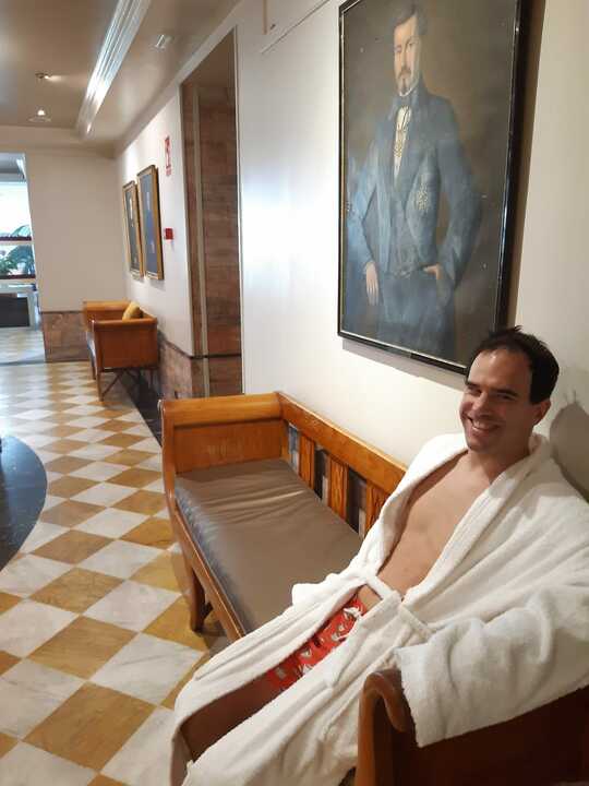 Arnedilloko hotel spako egongelan deskantsua hartzen. Xabier Zabala Sagasta
